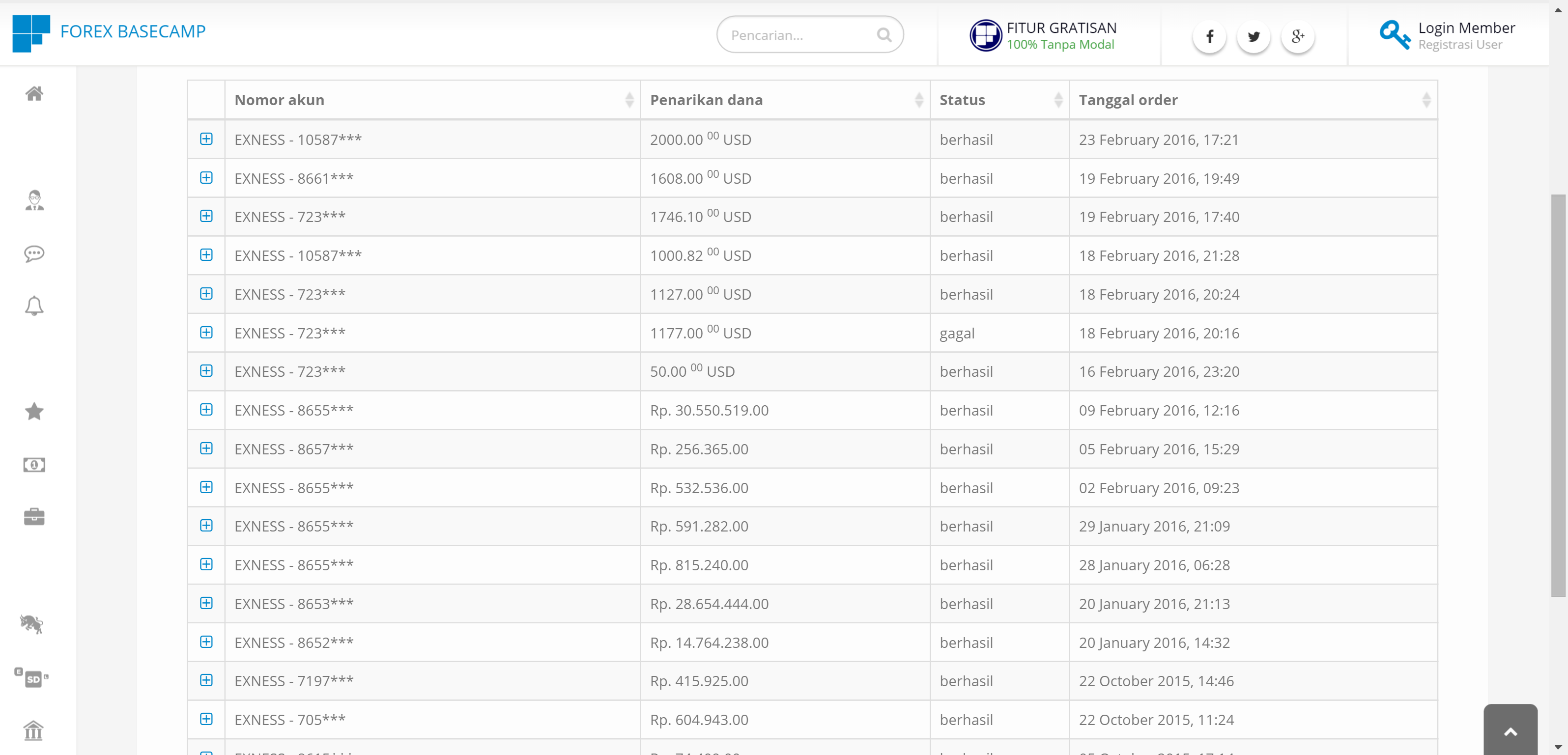 Proses Withdrawal/ Penarikan Dana Broker Exness ternyata Cukup Instan yang belum mencoba bisa di Coba. berikut data Transaksi WD Exness http://forexbase.camp/ib/list-withdrawal silakan di search dengan key Exness . Salam Profit
